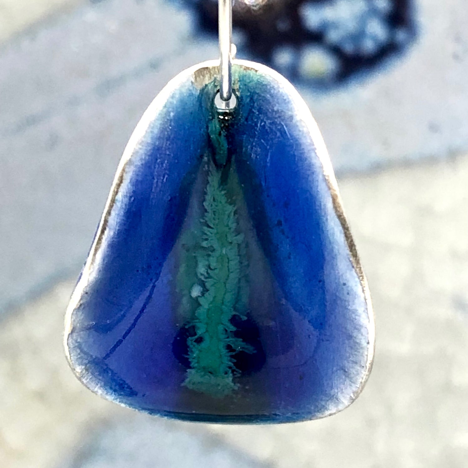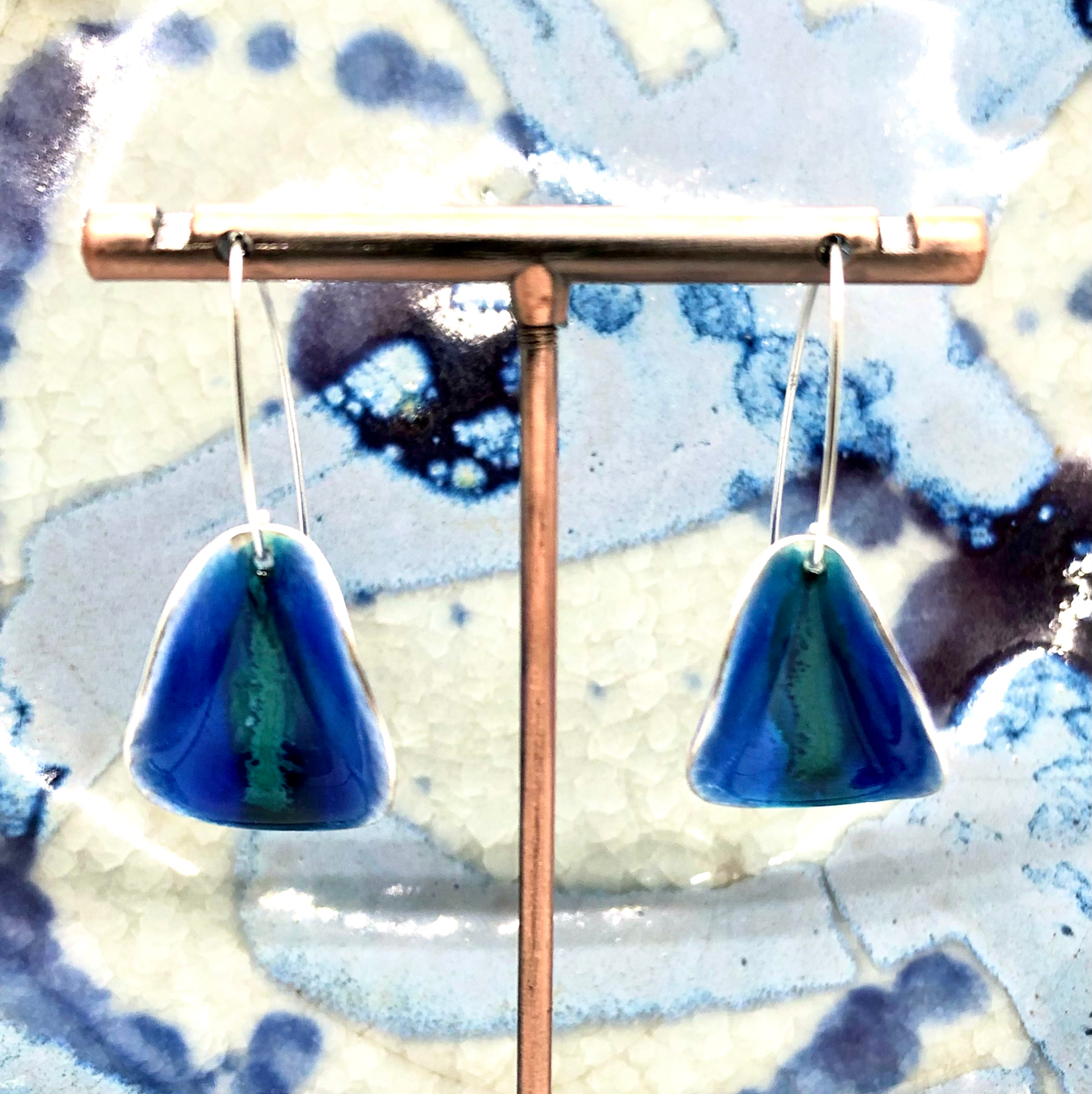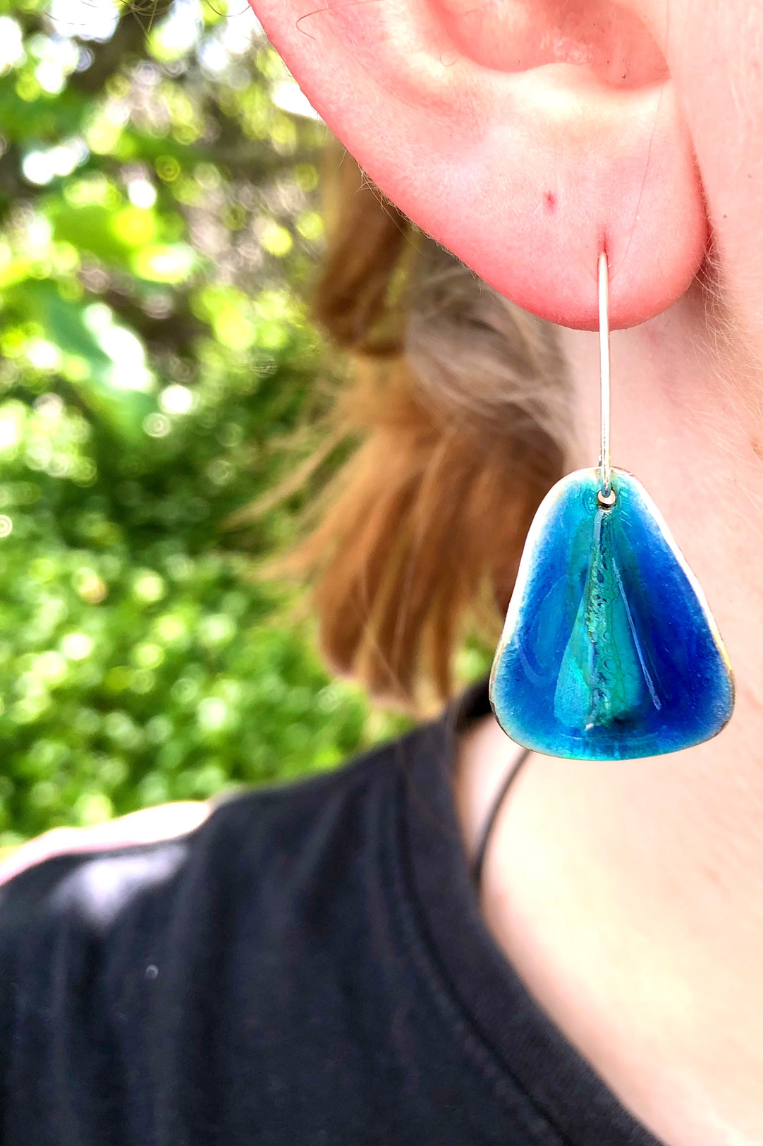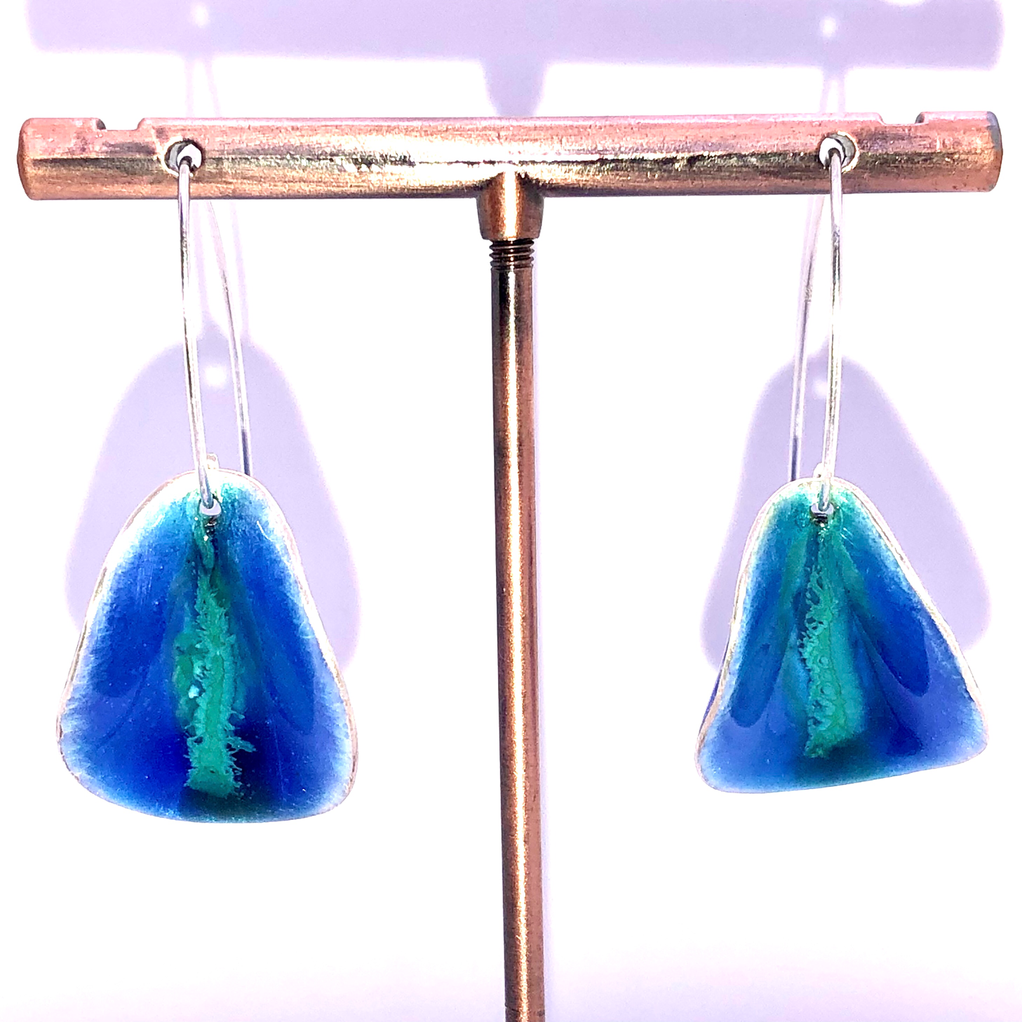Fine silver based earrings with a vitreous (glass) enamel coating.